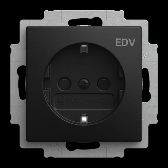 Die BUSCH-JAEGER Steckdose mit EDV-Beschriftung bietet Ihnen nicht nur modernste Technik, sondern auch Ordnung am Arbeitsplatz. Ideal für Büros, Praxen, Rechenzentren und überall dort, wo eine klare Trennung von Gerätegruppen wichtig ist. Die schwarze Variante passt sich dezent jedem Einrichtungsstil an und wirkt zugleich hochwertig. Weil Ordnung, Sicherheit und Optik in der professionellen Installation heute unverzichtbar sind, setzen Sie mit dieser Steckdose auf höchste Qualität „Made in Germany“.