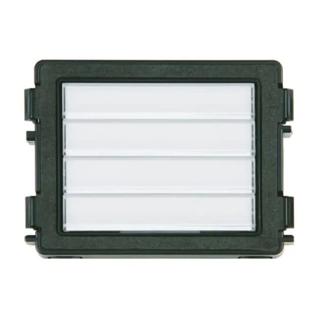 Dank flexibler Einstellmöglichkeiten und einfacher Bedienung ist dieses Tastenmodul eine clevere Wahl für Mehrfamilienhäuser, Wohnanlagen und gewerbliche Objekte. Verleihen Sie Ihrer Türstation mit diesem 4- bzw. 8-fach-Modul ein Plus an Komfort und Übersicht – alle Besucher finden auf den klar beschriftbaren Namensfeldern sofort die richtige Klingel.