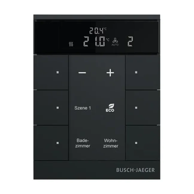Erleben Sie moderne Gebäudesteuerung mit dem BUSCH-JAEGER SBS/U6.0.11-885 Raumtemperaturregler in elegantem Schwarz matt. Dieses 6-fach Multifunktions-Bedienelement für KNX-Systeme verschafft Ihnen flexible Kontrolle über Licht, Jalousien, Temperatur und individuelle Szenen – alles mit einem einzigen Gerät.