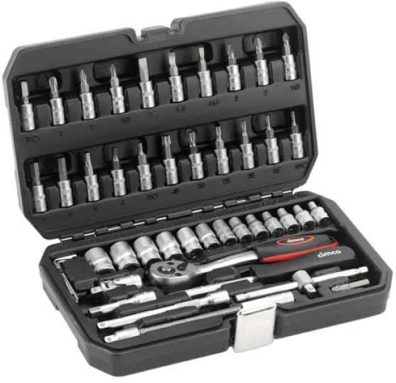 Der CIMCO 113106 Steckschlüssel-Satz ist die ideale Lösung für alle, die Wert auf Qualität, Vielseitigkeit und Ordnung legen. Das 45-teilige Set in der stabilen Kunststoffbox bietet Ihnen eine umfassende Auswahl an Steckschlüsseln, Bits und Zubehör – perfekt für Reparaturen, Montagen und Wartungsarbeiten in Haushalt, Werkstatt, Garage oder unterwegs. Ob Profi oder ambitionierter Heimwerker: Mit diesem Werkzeug-Set sind Sie für jede Schraubaufgabe bestens gerüstet.