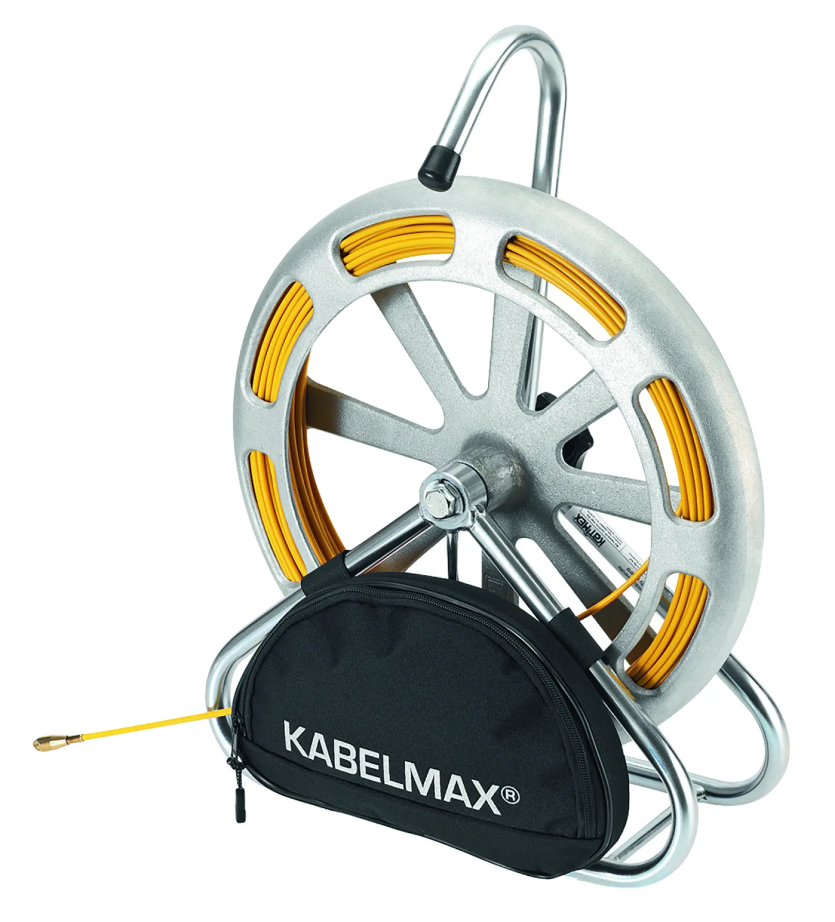 Kabelmax - das Unterflur-Kabeleinziehsystem der Profiklasse zum problemlosen Einziehen von Kabeln in leere oder belegte Kabelkanäle oder Rohre bis 60mm Durchmesser Kabeleinziehgerät für Unterflurkanäle komplett mit Glasfaserprofil 4, 5mm Durchmesser, 2 Anfangshülsen M5, Anfangsbirne 11mm Durchmesser mit Zugöse 6mm Durchmesser