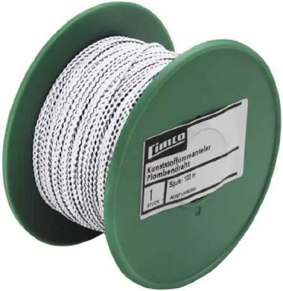 Kunststoffummantelter Plombendraht, Spule 100 m, weiß, mit einem Ø von 0,6 mm, Eisendraht