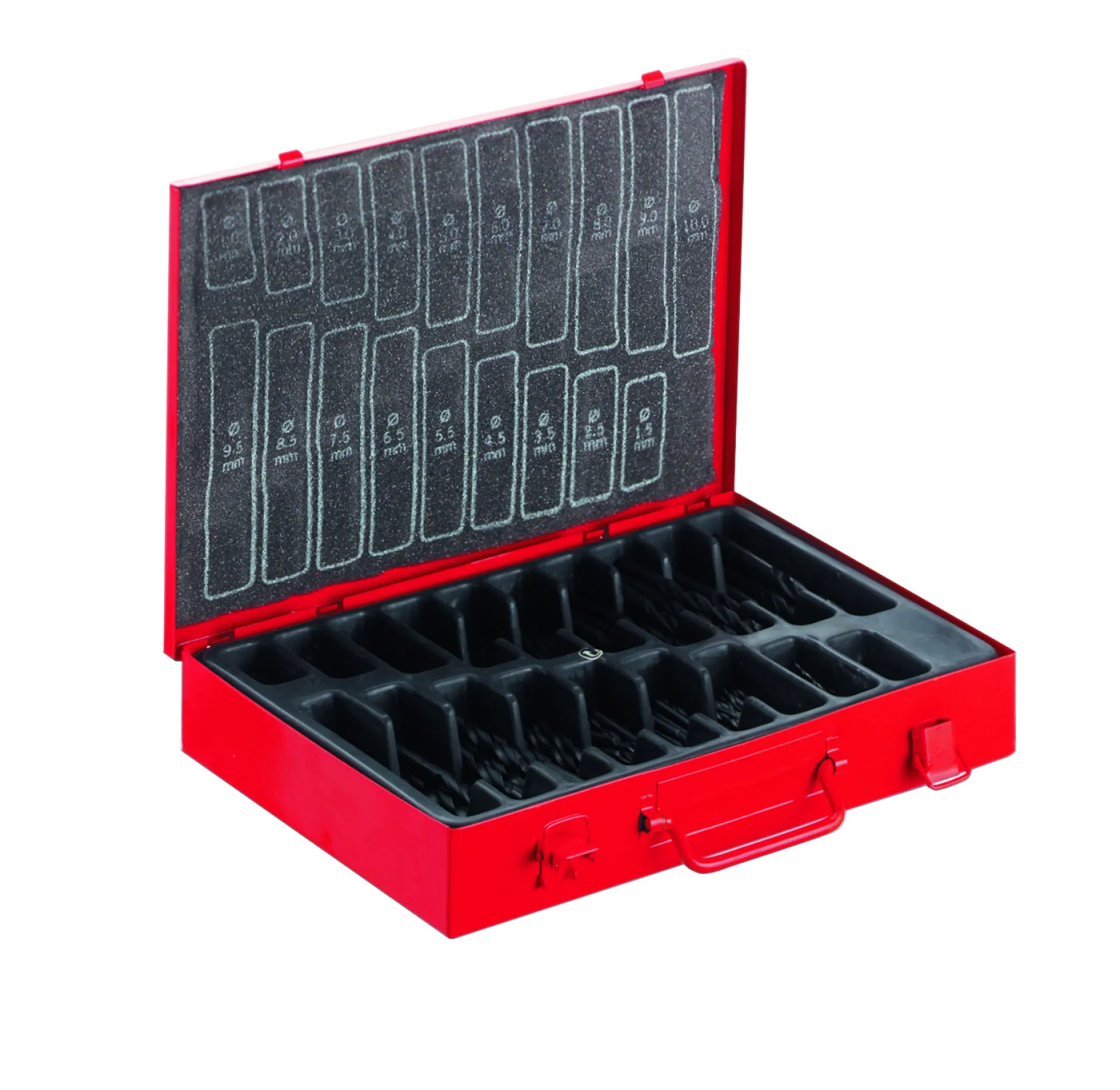 Spiralbohrer Werkstatt-Magazin, in Metallkassette, Bohrer rollgewalzt, HSS, DIN 338, 170-teilig, um 0, 5 mm steigend
