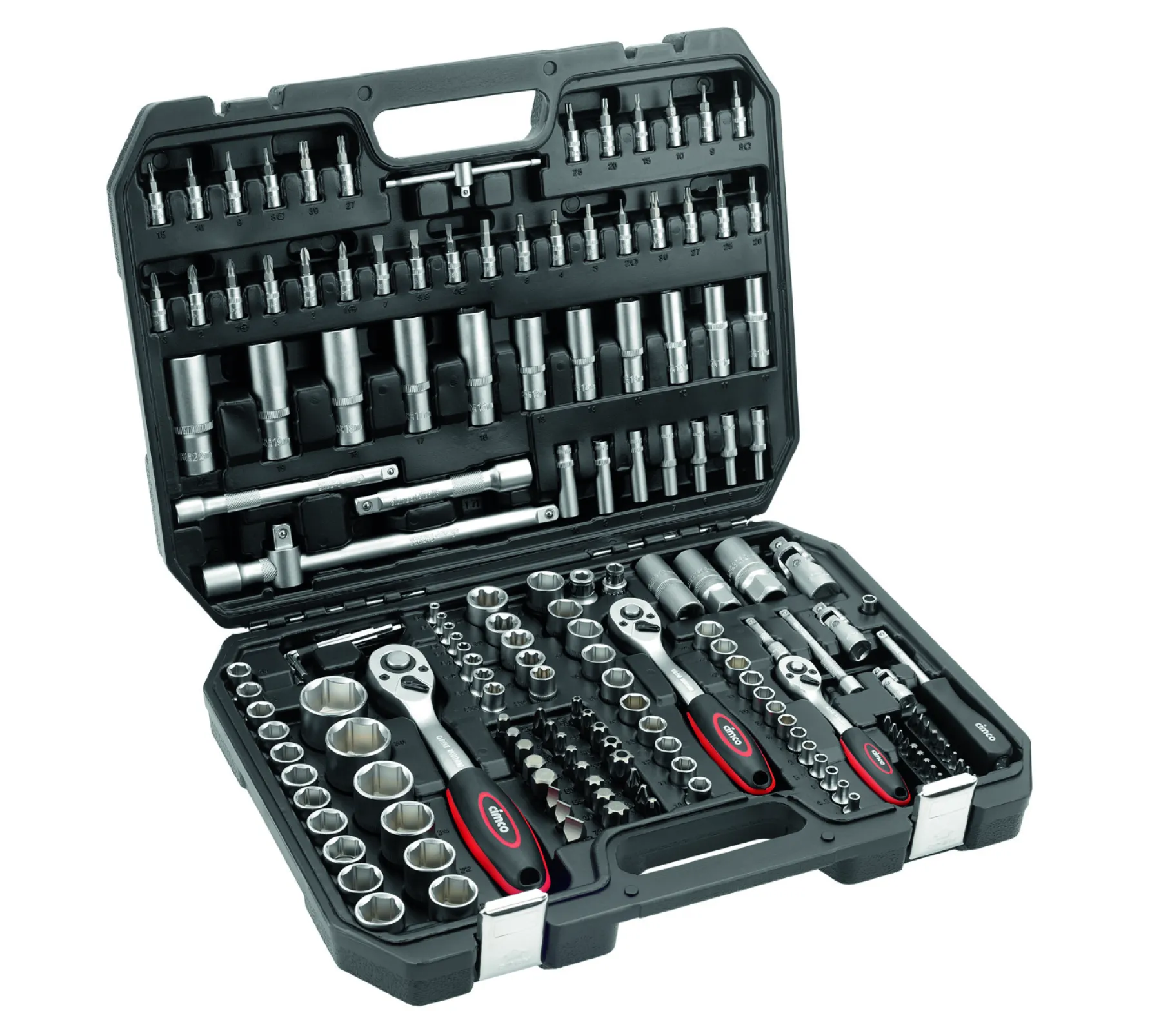 Der Cimco Steckschlüssel-Satz 171-teilig überzeugt als professionelles Komplett-Set für jeden Anspruch. Dank seiner hochwertigen Komponenten aus robustem Chrom-Vanadium-Stahl und der durchdachten Sortierung sind Sie bei allen Arbeiten rund um Haushalt, Werkstatt, Auto oder Industrie immer perfekt ausgerüstet.