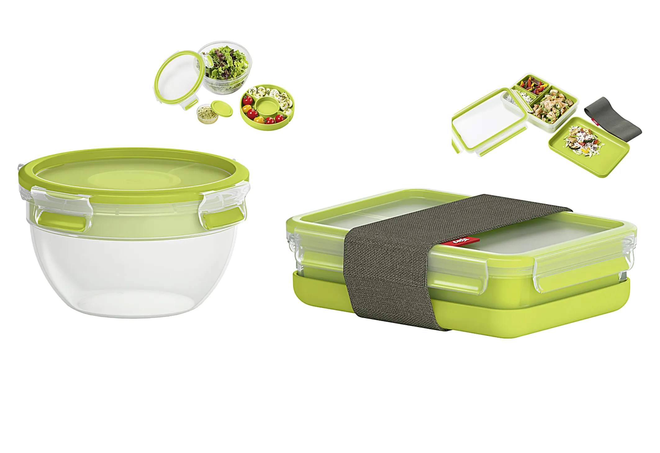 Emsa Lunchbox Clip & Go 1,2l, Auslaufsichere Frischhaltedose mit 3 Einsätzen & Teller, Mikrowellengeeignet, Grün
