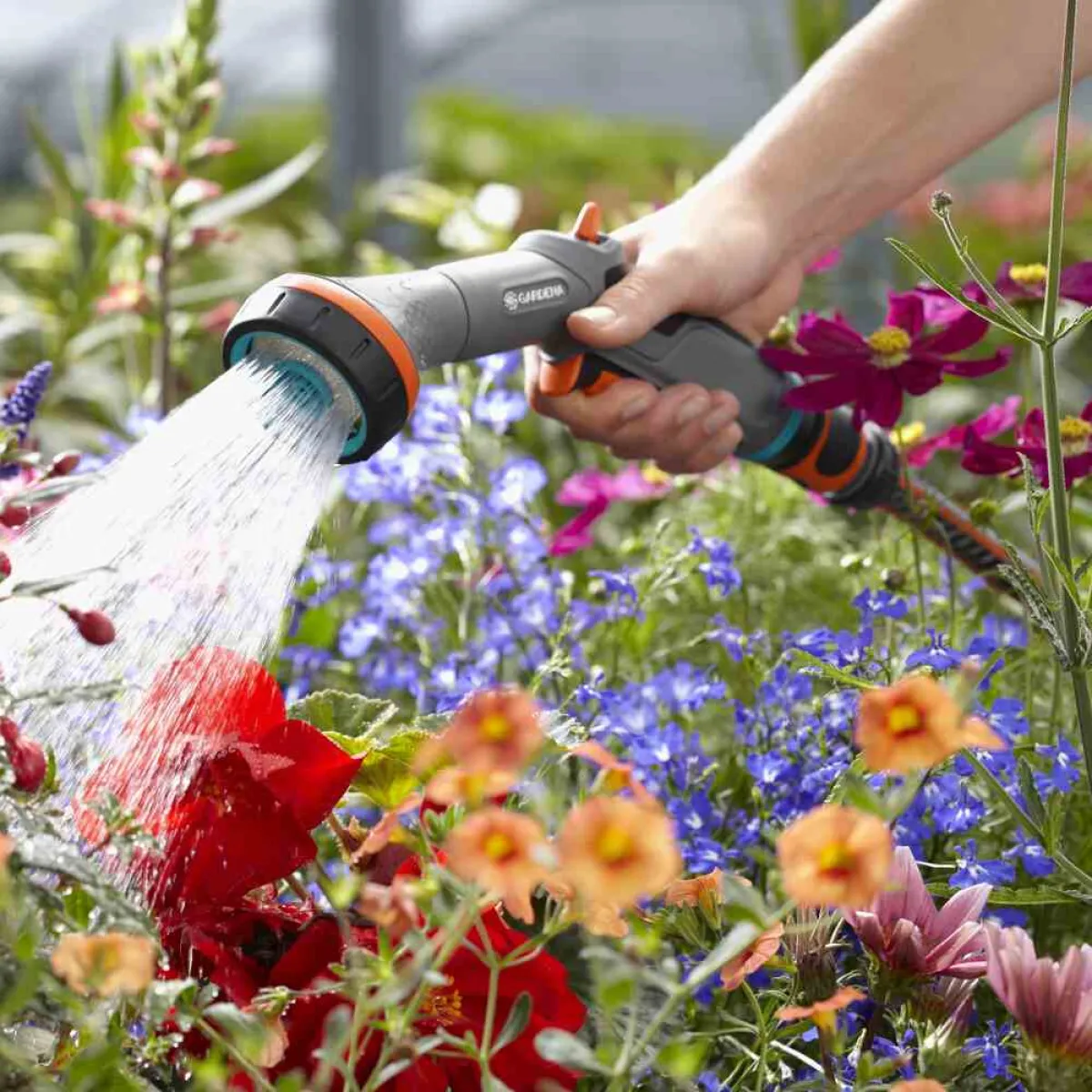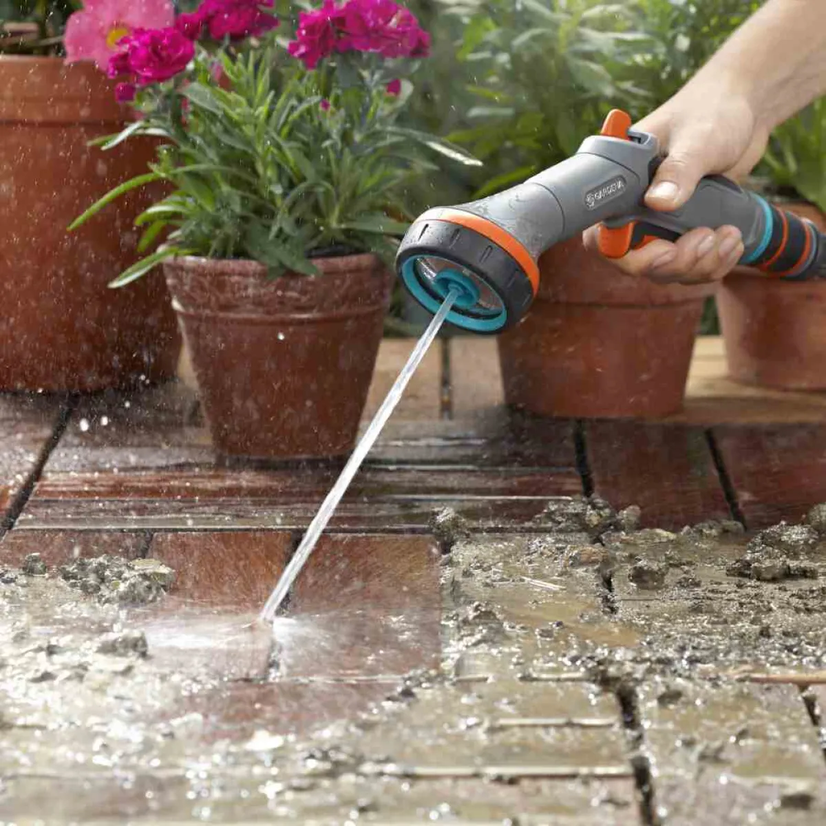 Mit der Gardena Comfort Reinigungsbrause gelingt Ihnen sowohl das sanfte Gießen empfindlicher Pflanzen als auch das gezielte Entfernen von Schmutz im Handumdrehen. Das Umschalten zwischen den Strahlarten ist besonders einfach, sodass Sie flexibel auf jede Situation reagieren können.