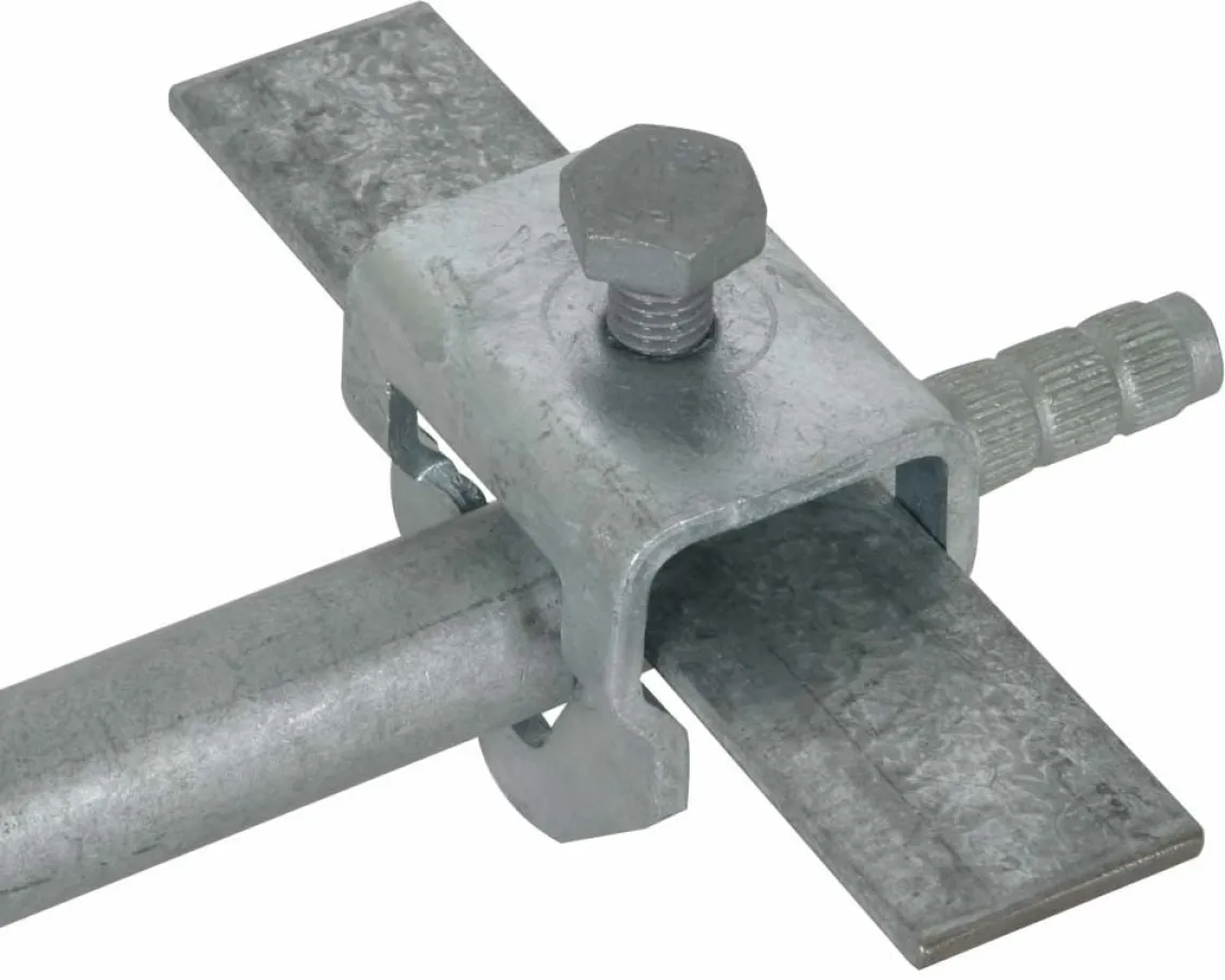 Die DEHN 630120 TE-Anschlussklemme ist die professionelle Lösung für den sicheren und flexiblen Anschluss von Rundleitern, Flachbändern oder Seilen an Tiefenerdern. Speziell entwickelt für den Kreuz- und Parallelanschluss, überzeugt diese Anschlussklemme durch ihre robuste Bauweise und das feuerverzinkte Stahlmaterial, das einen zuverlässigen Korrosionsschutz garantiert – optimal für den langjährigen Einsatz in Erdungs- und Blitzschutzsystemen.