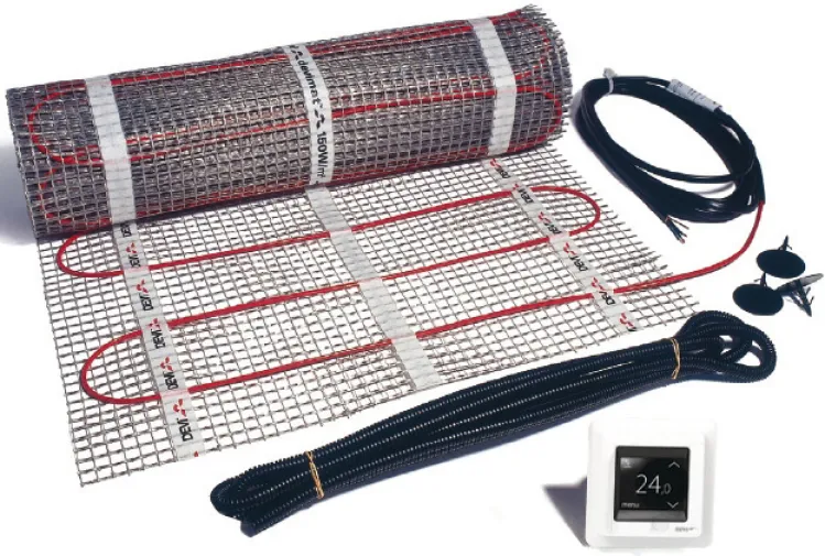 Das DEVImat 150 Dünnbett-Set bietet Ihnen eine moderne und effiziente Lösung zur elektrischen Fußbodentemperierung. Mit einer besonders niedrigen Aufbauhöhe von nur 3,2 mm eignet sich dieses Komplettset ideal für Renovierungen und die unkomplizierte Nachrüstung in Bad, Küche, Flur oder Wintergarten – ganz ohne aufwändige Umbauarbeiten.