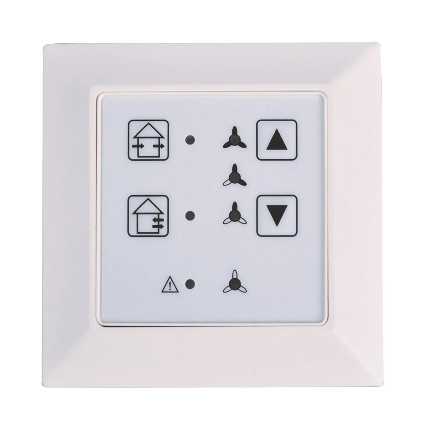 Das übersichtlich gestaltete Bedienfeld ermöglicht eine einfache Einstellung wichtiger Parameter wie Luftstrom, Querlüftung (z.B. für die Sommerbetreibung) sowie eine Sofortanzeige von Filterstatus und eventuellen Störungen. Dank des mitgelieferten Abdeckrahmens lässt sich die Kompaktregelung wahlweise Aufputz oder Unterputz in Standard-Gerätedosen montieren – ideal für Neubau und Modernisierung. Die Zentralsteuerung überzeugt durch schlanke Maße von 80 x 80 x 49 mm und passt dezent in jede Umgebung.