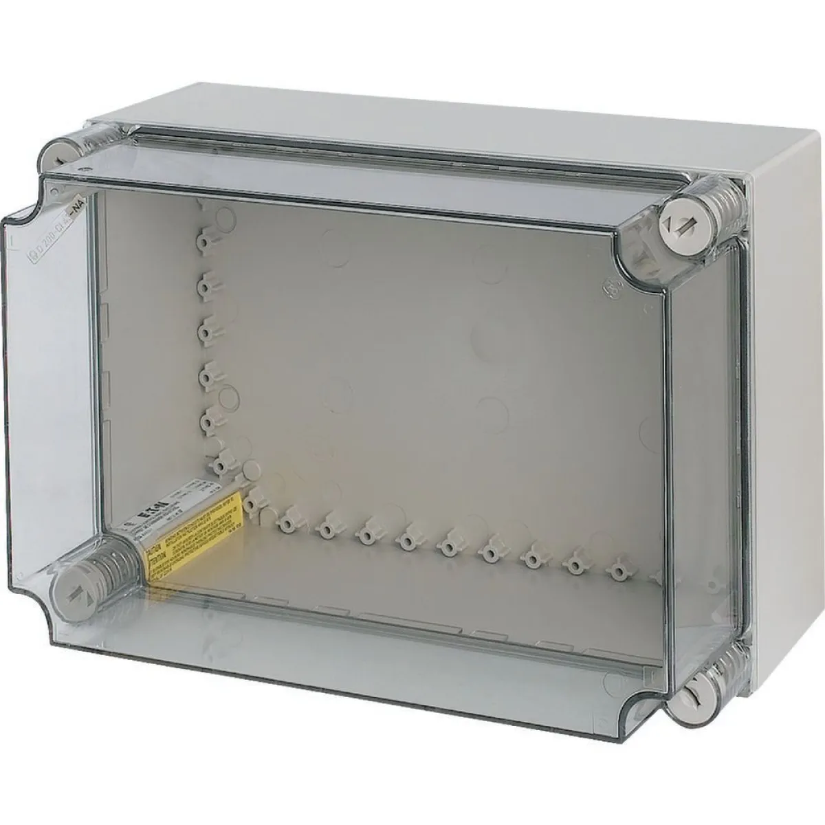 Das EATON CI43X-200-NA Isolierstoffgehäuse mit Schutzart IP65 bietet optimalen Schutz für Ihre elektrischen Anlagen, sowohl im Innen- als auch im Außenbereich. Gefertigt aus schlagfestem Polycarbonat (RAL 7035, grau) und ausgestattet mit einem transparenten, rauchgrauen Deckel, überzeugt dieses Leergehäuse durch Robustheit, moderne Optik und vielseitige Einsatzmöglichkeiten.