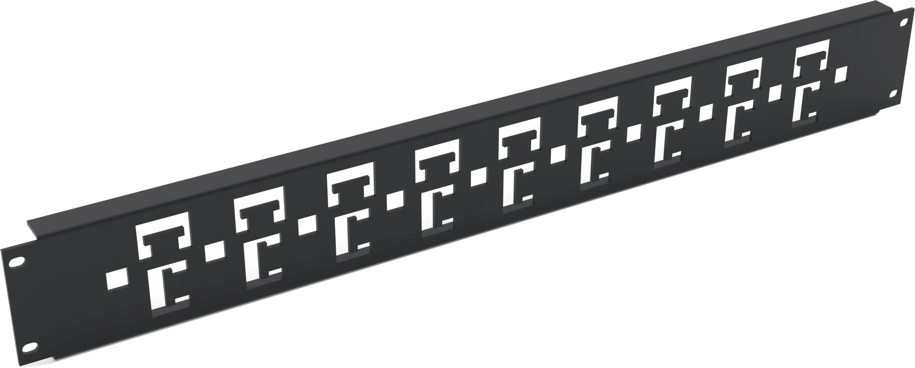 Gefertigt aus hochwertigem Metall und beschichtet mit robustem Strukturlack (Enoc System Schwarz, RAL 9005), vereint diese Kabelabfangschiene Strapazierfähigkeit, lange Lebensdauer und modernes Design. Die Schiene wird horizontal über die gesamte Schrankbreite montiert und direkt an den Eckprofilen befestigt – das macht die Installation besonders einfach und flexibel. Mit passgenauen Öffnungen für Kabelbinder und Käfigmuttern bleibt Ihre Verkabelung stets ordentlich und sicher fixiert.