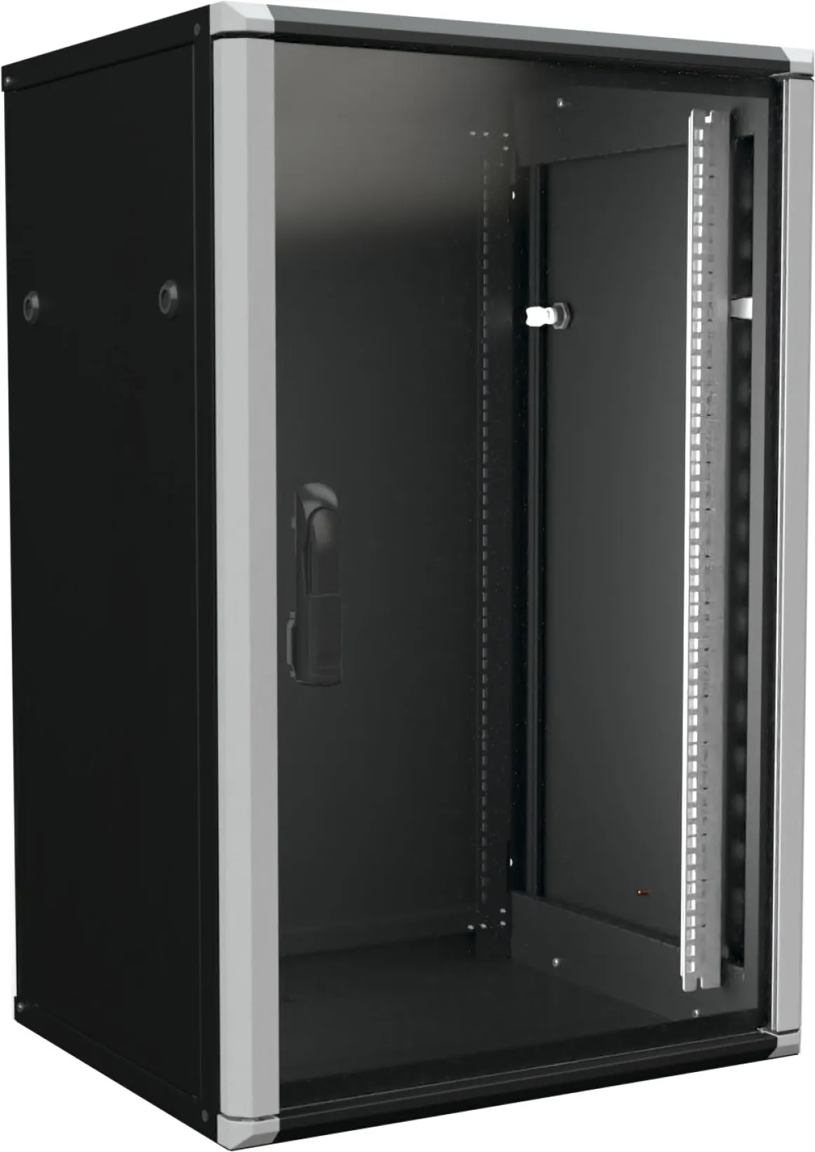 Der Enoc Wandschrank 18HE bietet eine sichere und professionelle Lösung zur Unterbringung von IT- und Netzwerkkomponenten. Das robuste Gehäuse aus Aluminium und pulverbeschichtetem Stahl sorgt für Stabilität, Langlebigkeit und eine moderne Optik in elegantem Schwarz (RAL 9005).