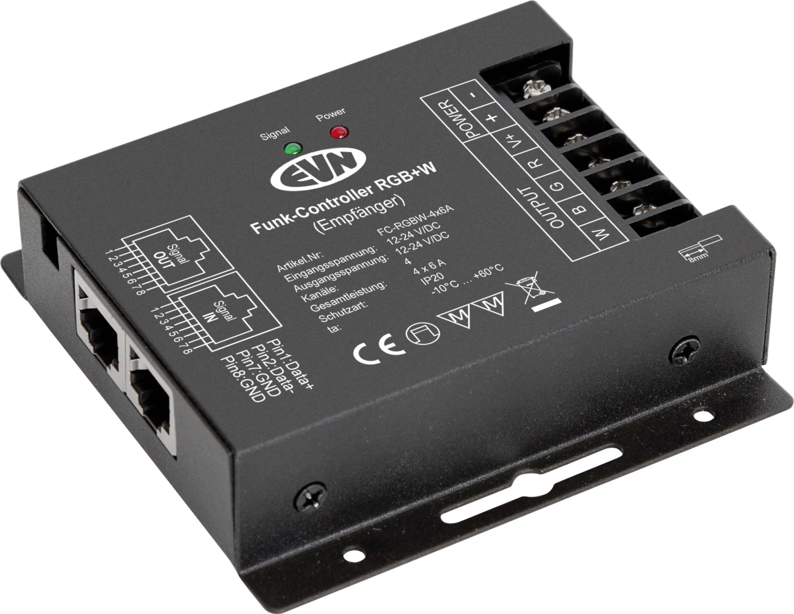 EVN Lichttechnik Funk-Controller-Empfänger FCRGBW4X6A, RGBW LED Steuerung, 12-24V DC