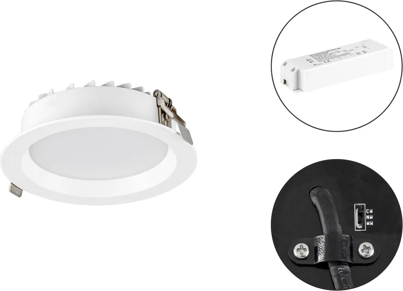 Dank der geringen Einbautiefe lässt sich die LED-Deckeneinbauleuchte auch in flachen Decken problemlos installieren. Über einen integrierten Schalter auf der Rückseite wählen Sie bequem zwischen drei Lichtfarben: warmweiß (3000K), neutralweiß (4000K) oder tageslichtweiß (5700K). So passen Sie die Beleuchtung jederzeit an Ihre Bedürfnisse an – ob gemütliches Ambiente im Wohnraum oder fokussiertes Licht im Arbeitsbereich.