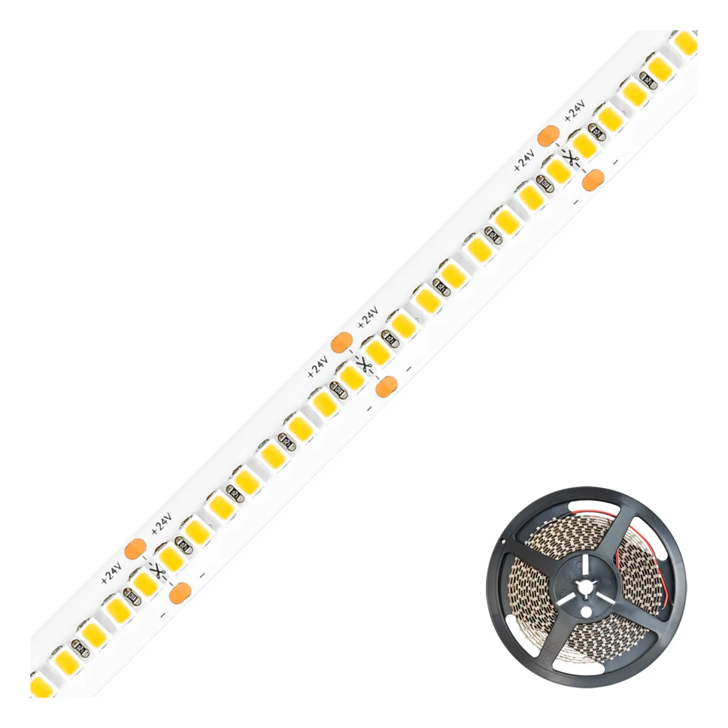Kürzbarer und flexibler LED-Strip mit hochleistungs LED-Chips. Die auf diesem Strip verbauten superbright LED-Chips erreichen im Vergleich zu herkömmlichen LED-Chips eine deutlich höhere Lichtausbeute bei gleicher Leistungsaufnahme, bzw. vergleichbare Lichtausbeute bei geringerer Leistungsaufnahme. Dadurch lassen sich die verschiedensten Anwendungen, wie z.B. direkte oder indirekte Beleuchtung für Wohnzimmer, Schlafzimmer, Flur, etc. noch Energiesparender umsetzen. Auch Projekte mit gehobenen Ansprüchen bezüglich der Lichtausbeute lassen sich mit diesen Strips realisieren. Wichtig: Um ein überhitzen des Strips zu vermeiden, darf dieser nur auf Wärmeleitenden Untergründen verbaut werden, vorzugsweise auf -bzw. in Aluminiumprofilen. Exaktes Binning erlaubt Farbtoleranzen von maximal +/-50K. Die Lichtausbeute beträgt 3800lm pro Meter.