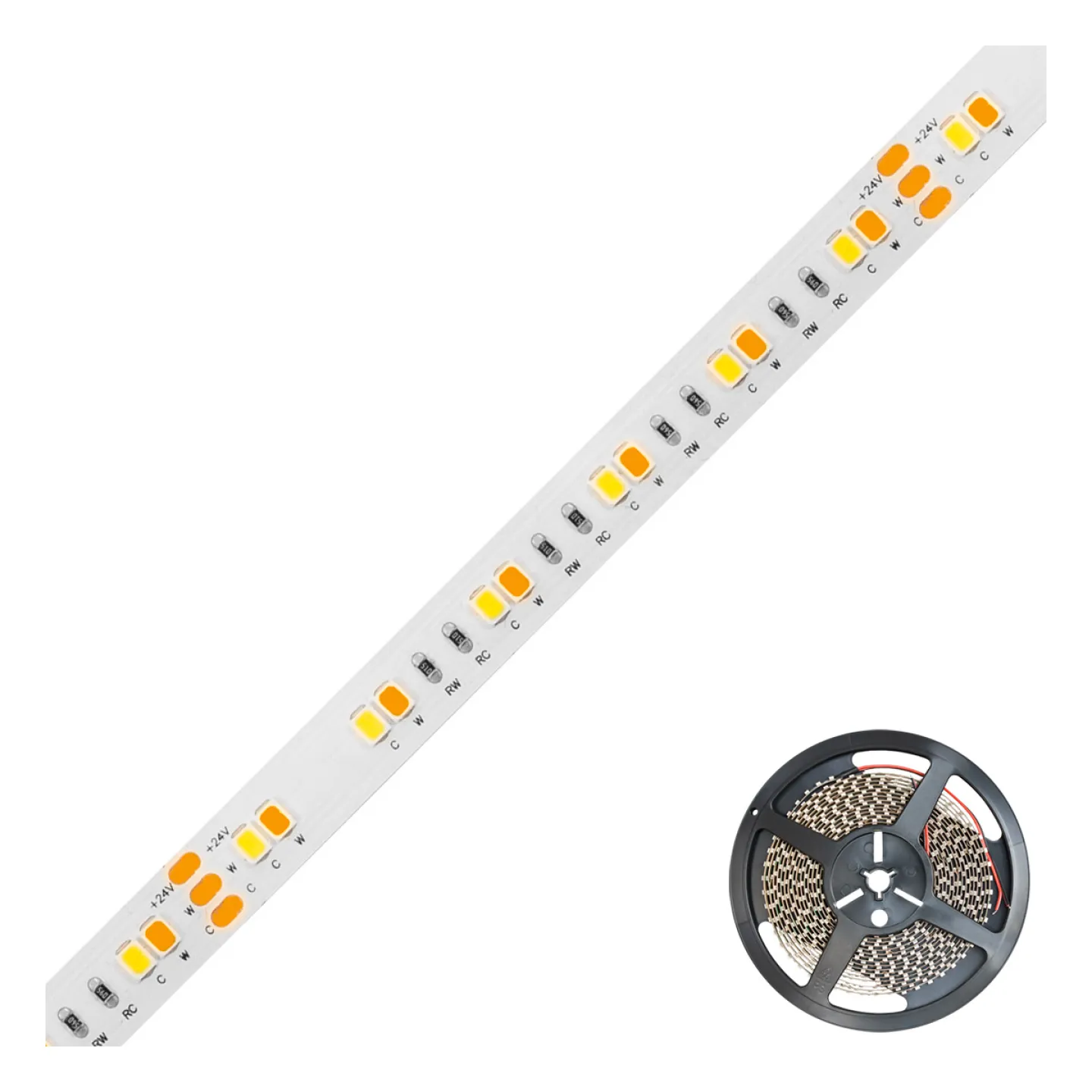 Kürzbarer und flexibler LED-Strip mit hochleistungs LED-Chips und Strom-Konstanter. Die auf diesem Strip zusätzlich verbauten IC s (Strom-Konstanter) senken den Energieverbrauch im Vergleich zu den anderen super-bright-LED-Strips. Da der Strip mit 48V/DC betrieben wird können Längen bis zu max. 15m bei einseitiger Einspeisung betrieben werden. Dadurch lassen sich die verschiedensten Anwendungen, wie z. B. direkte oder indirekte Beleuchtung für Wohnzimmer, Schlafzimmer, Flur, etc. noch energiesparender umsetzen. Hierbei handelt es sich um einen Kaltweiß-Warmweiß-Strip, d. h. die Lichtfarbe kann, mit entsprechenden separat erhältlichen Steuerungen, im Bereich von 2500K-6500K beliebig gesteuert werden. Wichtig: Um ein überhitzen des Strips zu vermeiden, darf dieser nur auf wärmeleitenden Untergründen verbaut werden, vorzugsweise in Aluminiumprofilen. Die technischen Angaben sind Maximalwerte und werden nur bei voller Leistung erreicht. Die Lichtausbeute beträgt pro Meter max. 800lm bei 6500K und 650lm bei 2500K. ta: -20°C - 45°C.
