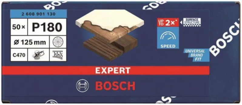 Sparen Sie wertvolle Zeit, denn das Bosch EXPERT C470 sorgt für schnellen Abtrag selbst bei großflächigen Schleifarbeiten. Durch die Mehrloch-Technologie wird entstehender Schleifstaub wirkungsvoll abgesaugt und die Oberflächen bleiben bis zum letzten Blatt einheitlich und präzise geschliffen. Das feine Schleifpapier (K180) ist bestens geeignet, um Holz und Farben effektiv und staubarm zu bearbeiten – und das mit messbar weniger Kraft- und Zeitaufwand gegenüber herkömmlichen Papieren.