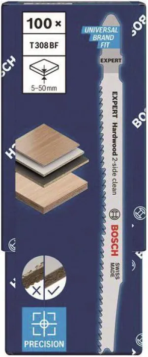 Erleben Sie ausrissfreies Sägen auf höchstem Niveau: Mit den BOSCH EXPERT Hardwood 2-side clean T308BF Stichsägeblättern (100 Stück) erzielen Sie selbst bei anspruchsvollen Materialien wie laminierten Arbeitsplatten, Multiplexplatten oder Hartholz stets einen präzisen, sauberen Schnitt – sowohl auf der Ober- als auch auf der Unterseite. Ideal für professionelle Anwendungen sowie für ambitionierte Heimwerker!