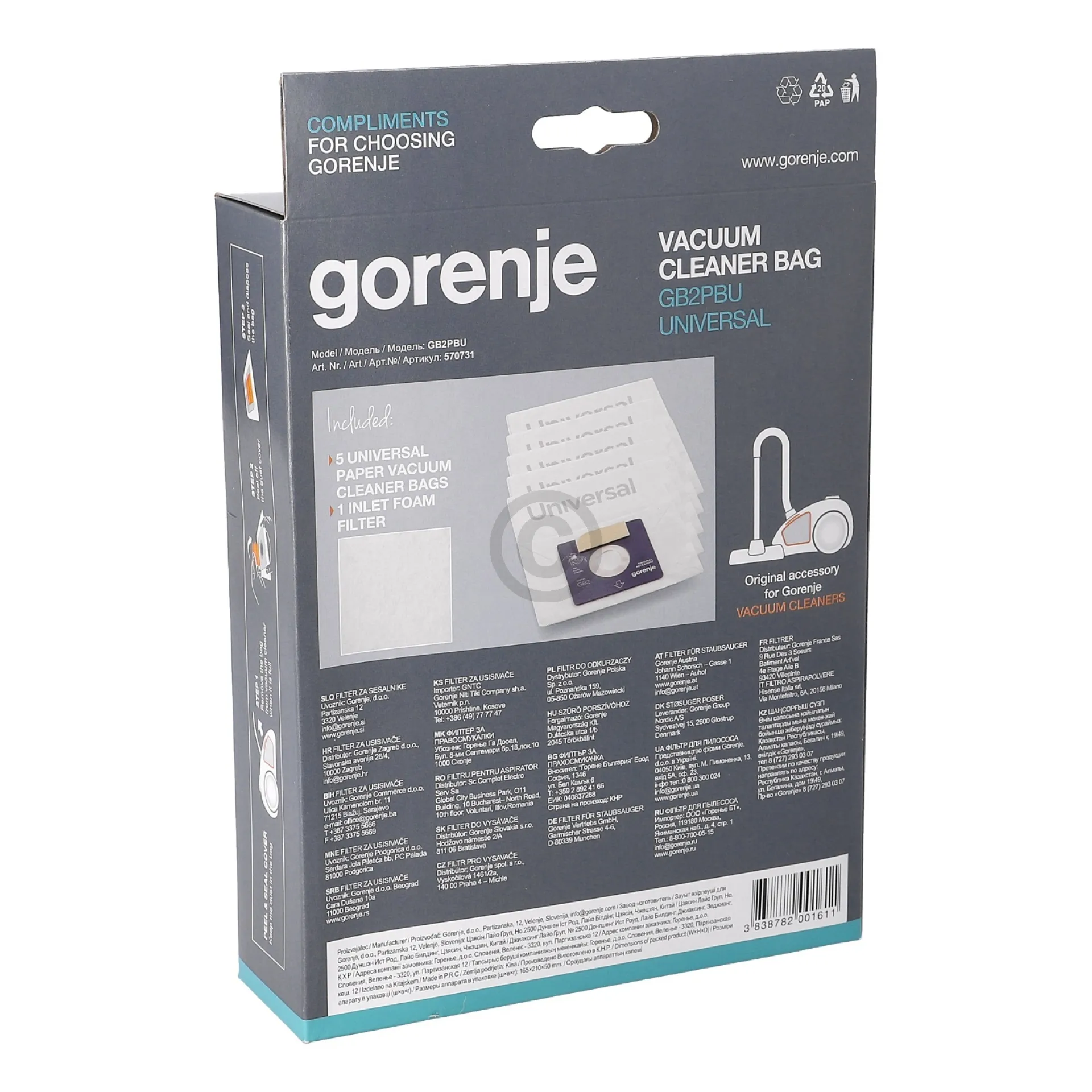 Filterbeutel Gorenje GB2 570731 für Bodenstaubsauger 5Stk