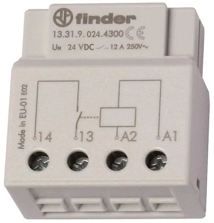 Finder Schaltrelais 13.31.9.024.4300, Unterputz Installationsrelais 1 Schließer 12A 24V DC, 800W Lampenlast