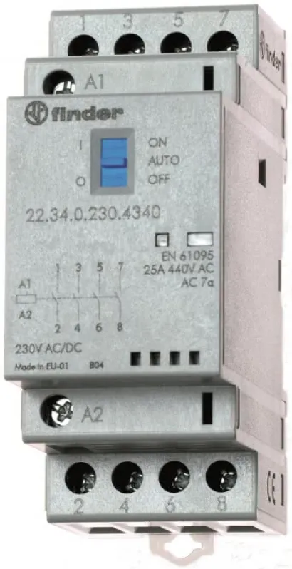 Mit dem Finder 22.34.0.230.4340 Installationsschütz optimieren Sie Ihre Elektroinstallation auf ein neues Niveau – robust, sicher und modular erweiterbar!