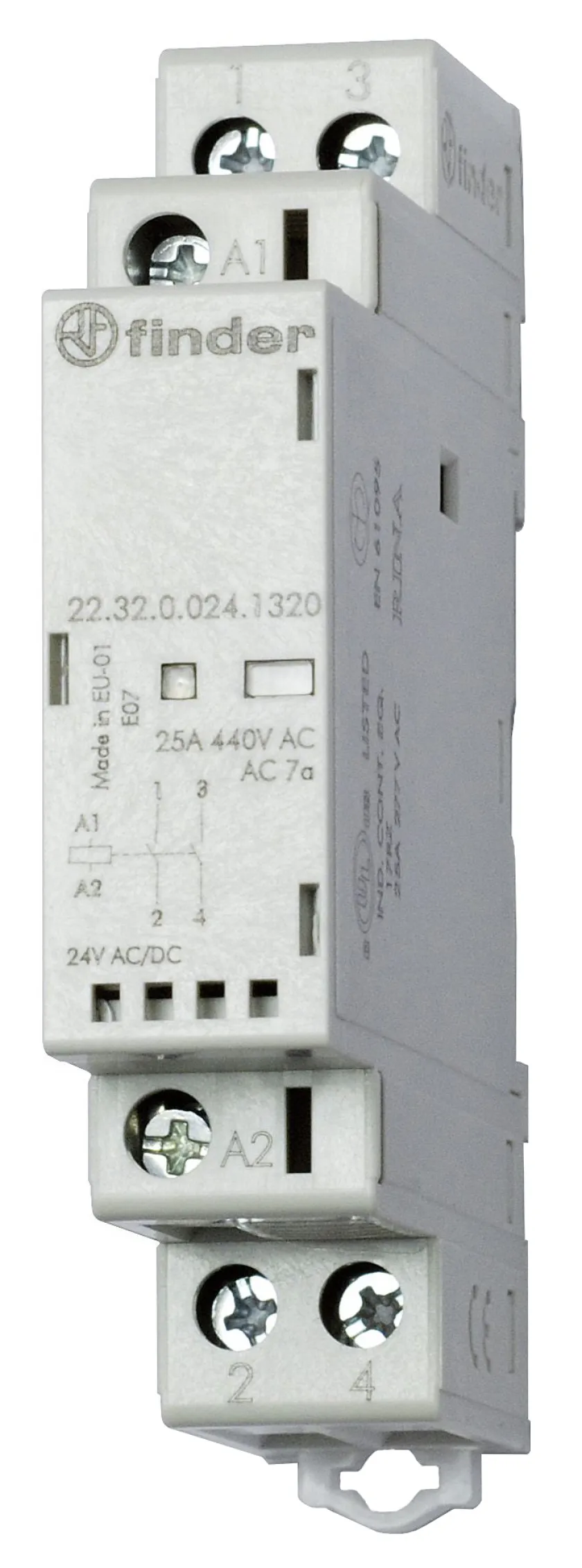 Finder Installationsschütz 22.32.0.024.4320, 25A 24V AC/DC, 2 Schließer