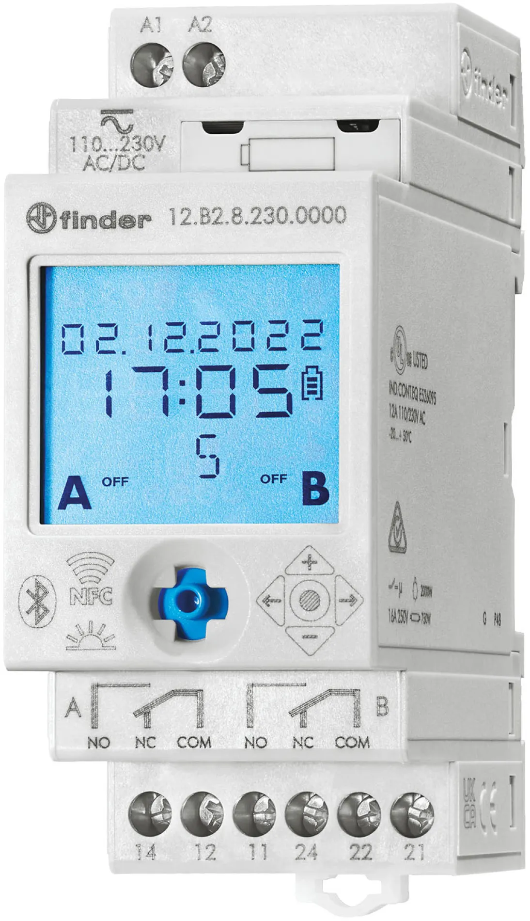 Finder Astro-Jahreszeitschaltuhr 12.B2.8.230.0000, 2 Kanäle, Hutschiene