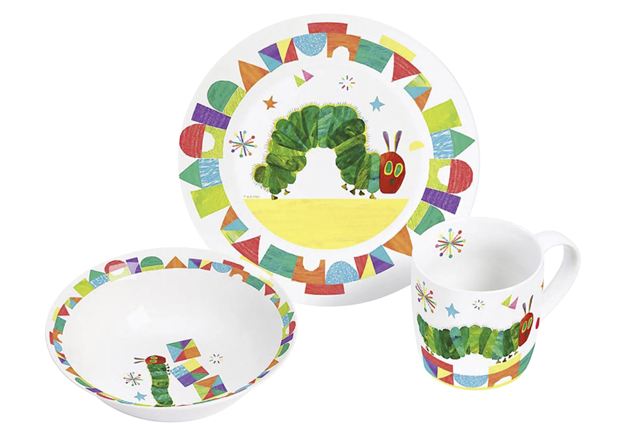 GEDA LABELS Kindergeschirrset Raupe Nimmersatt, 3-teilig, Porzellan
