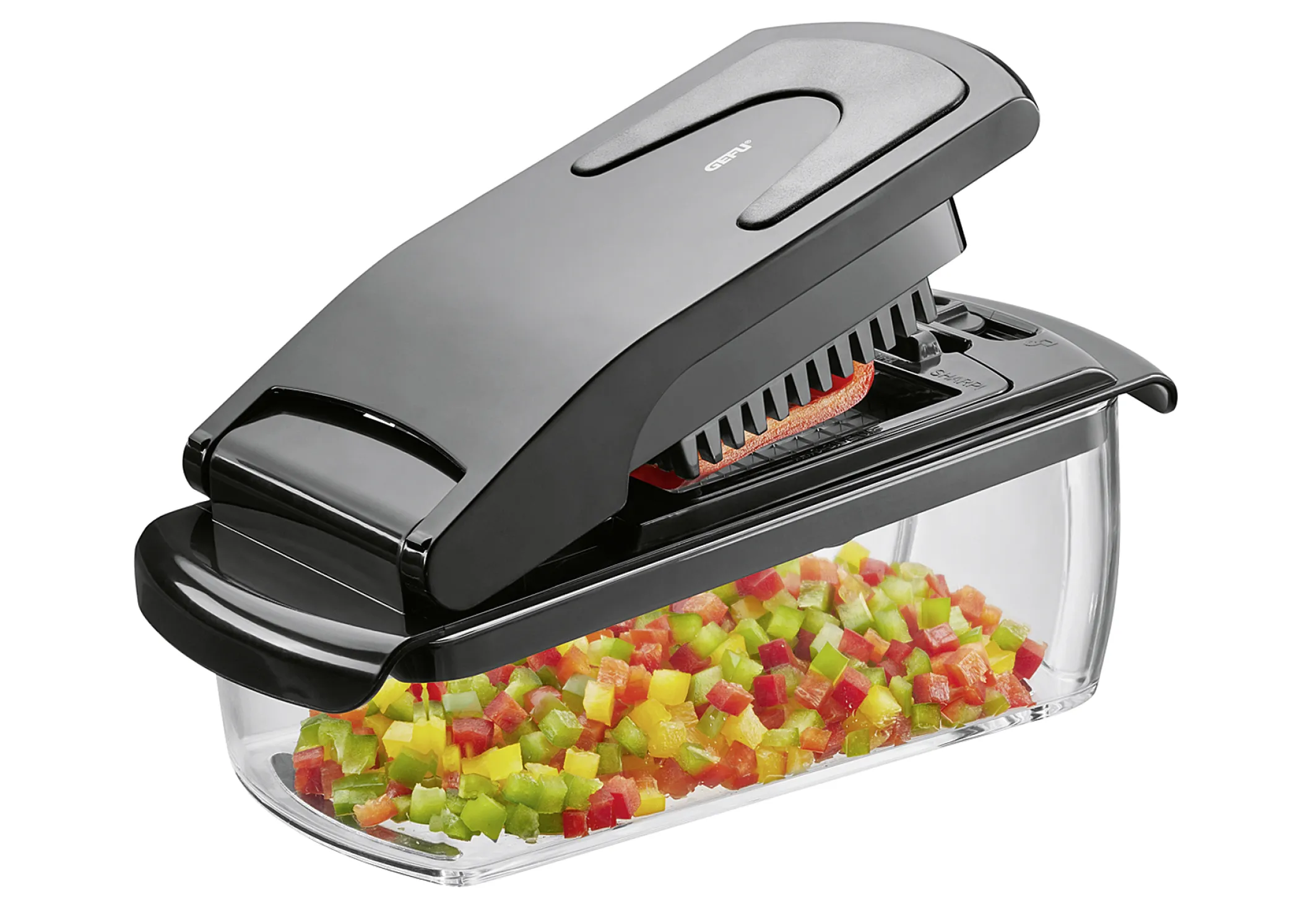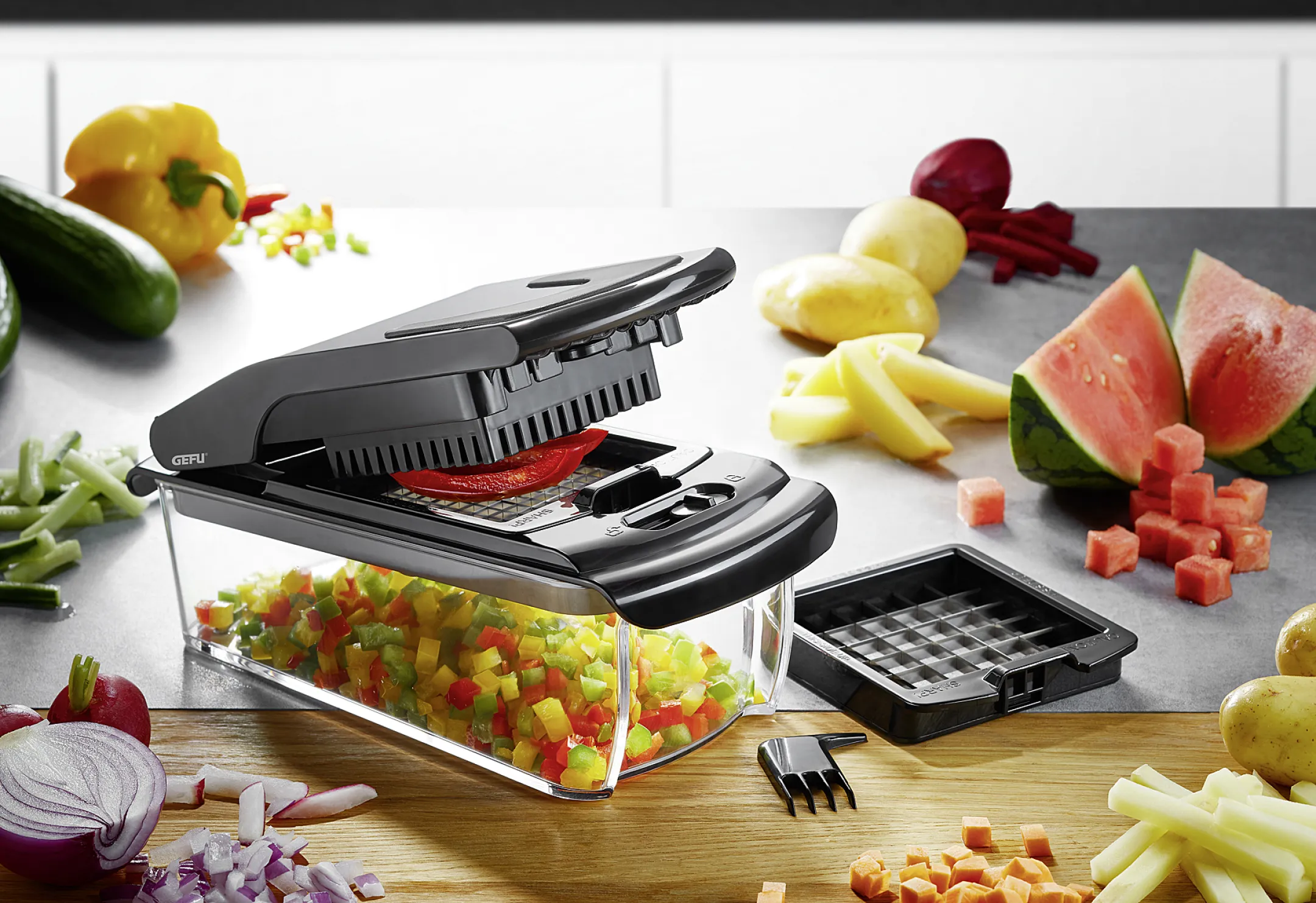 GEFU Gemüseschneider Treppo, Würfel- & Stifteschneider, 2 Schneidgitter