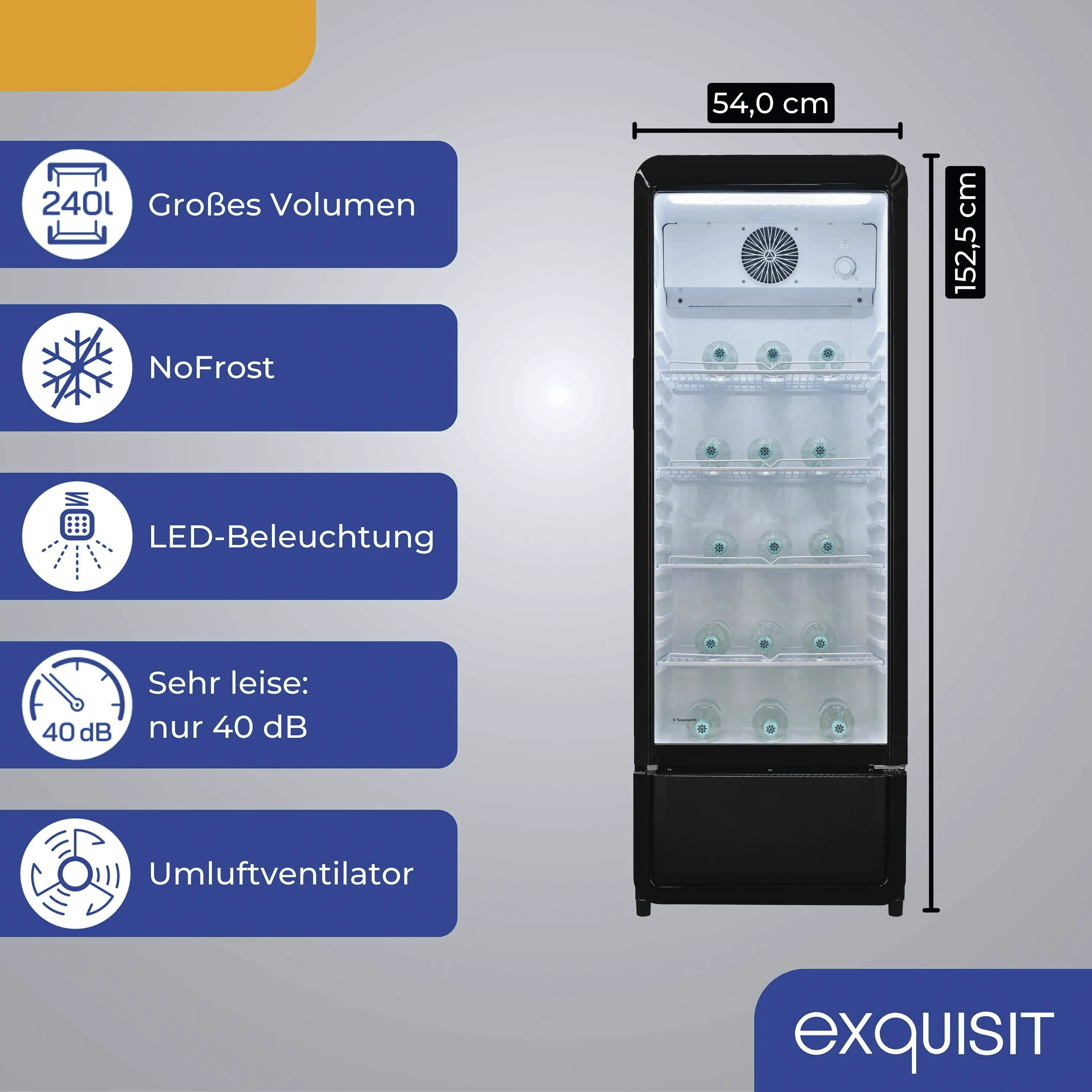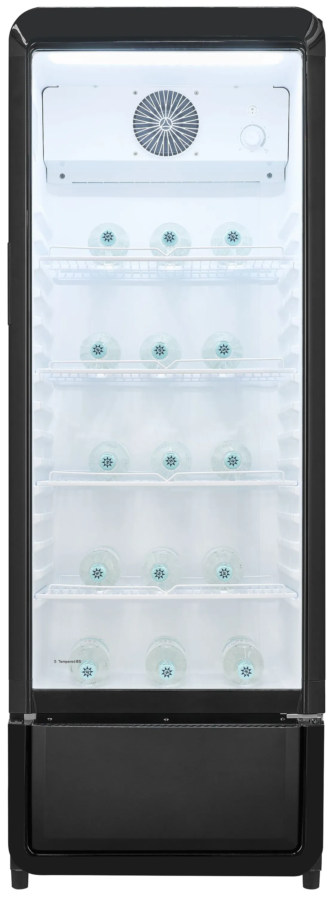 Ob für die gekonnte Getränkekühlung bei Events, als Präsentationsfläche für Softdrinks im Handel oder zur Lagerung empfindlicher Produkte wie Wein und Craft Beer – der Glastürkühlschrank punktet mit starker Kühlleistung und konstanten Temperaturen selbst bei bis zu 32 °C Umgebungstemperatur. Die intuitive Steuerung schützt Ihre Vorräte zuverlässig vor Temperaturschwankungen.