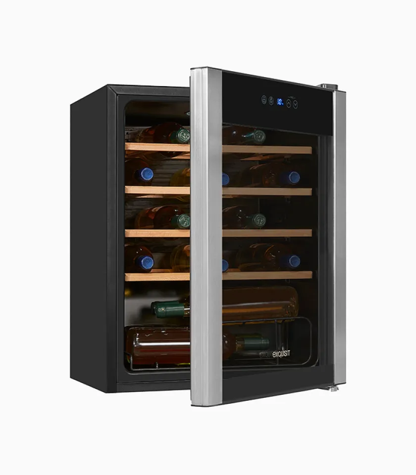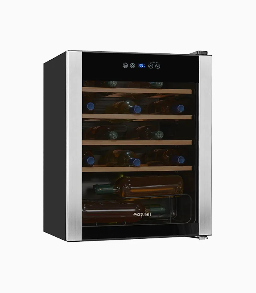 Exquisit Weinkühler schwarz | 66 Liter Nutzinhalt | LED-Licht