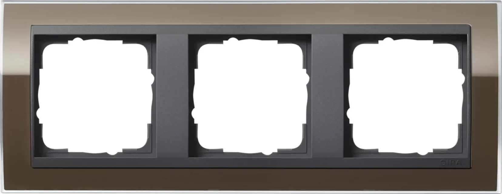 Durch die Kombination aus klarem Braun und dezentem Anthrazit passt dieser 3-fach Abdeckrahmen optimal zu anthrazitfarbenen GIRA Zentraleinsätzen und fügt sich harmonisch in zeitgemäße Wohnkonzepte oder moderne Geschäftsräume ein. Ein echter Blickfang für jedes Innenraumdesign, der mit smarter Gebäudetechnik überzeugt.