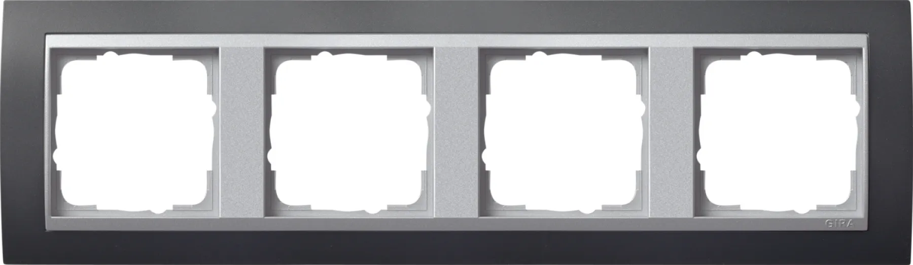 Setzen Sie auf Design, Flexibilität und Qualität – mit dem Gira 4-fach Abdeckrahmen Event anthrazit mit Aluminium-Zwischenrahmen.