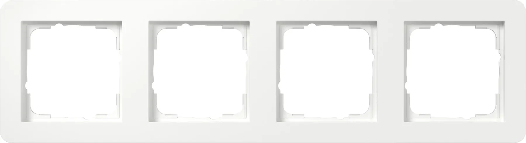 Der GIRA 0214150 Abdeckrahmen 4-fach aus der E1-Serie in edlem Reinweiß überzeugt durch seine ansprechende Optik und außergewöhnliche Bruchsicherheit.