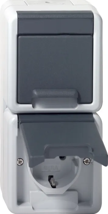 Mit ihrem modernen, neutralen Design in Grau fügt sich die GIRA Doppelsteckdose dezent in jede Umgebung ein – ob in Keller, Garage, Werkstatt, Gartenhaus, auf Terrasse oder Balkon. Dank der Schutzart IP44 ist sie optimal gegen Spritzwasser und Fremdkörper geschützt, wodurch sie sich perfekt für Feuchträume und überdachte Außenbereiche eignet.