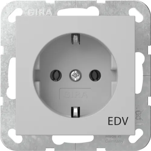 Die GIRA 4458015 SCHUKO-Steckdose EDV System 55 in grau matt vereint zuverlässige Sicherheit, modernes Design und eine präzise Kennzeichnung speziell für den EDV-Bereich. Perfekt geeignet für den professionellen Einsatz in Büros, Serverräumen und Arbeitsplätzen, sorgt diese Unterputz-Steckdose mit dem klaren Aufdruck „EDV” für maximale Übersichtlichkeit und ein einheitliches Erscheinungsbild in Ihrer Elektroinstallation.