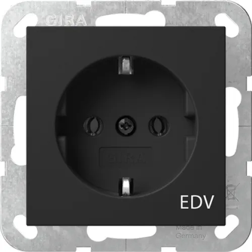 Die GIRA 4458005 SCHUKO-Steckdose mit Aufdruck "EDV" aus dem System 55 ist die ideale Wahl für eine professionelle und sichere Stromversorgung im EDV-Bereich. Mit ihrer modernen, schwarz-matten Oberfläche fügt sich diese Unterputz-Steckdose nahtlos in zeitgemäße Arbeitsumgebungen ein – von Bürogebäuden über Serverräume bis hin zu Homeoffices.