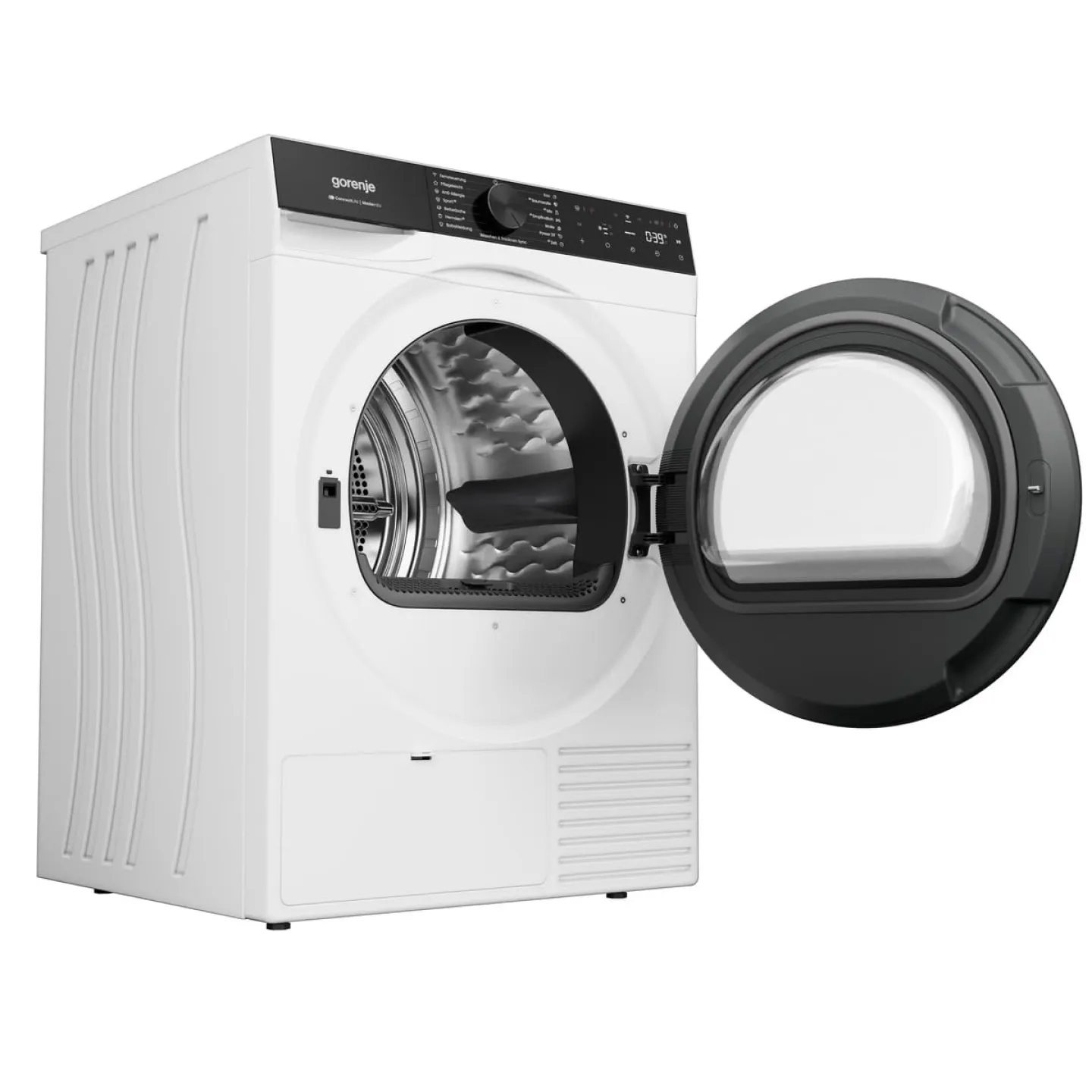 Der GORENJE D5G68C überzeugt auch optisch mit seinem zeitlosen, weißen Design und einem großzügigen 8-kg-Fassungsvermögen. Der große Türöffnungswinkel von 180° sowie die reversierende Edelstahltrommel erleichtern das Be- und Entladen. Praktische Details wie Knitterschutz und stufenweise Trocknungsgradeinstellung sorgen für alltagstauglichen Komfort.