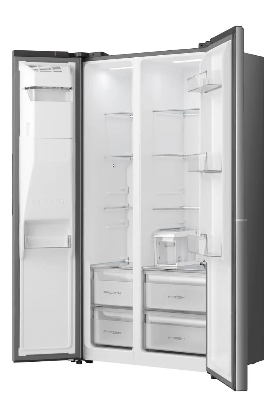 Genießen Sie maximale Frische und Stauraum mit dem Gorenje NRS917E61X Side-by-Side Kühlschrank aus edlem, dunkelgrauem Edelstahl. Das großzügige 528-Liter-Volumen (347 l Kühlteil & 181 l Gefrierteil) bietet ausreichend Platz für große Wocheneinkäufe, Familienvorräte oder festliche Menüs.