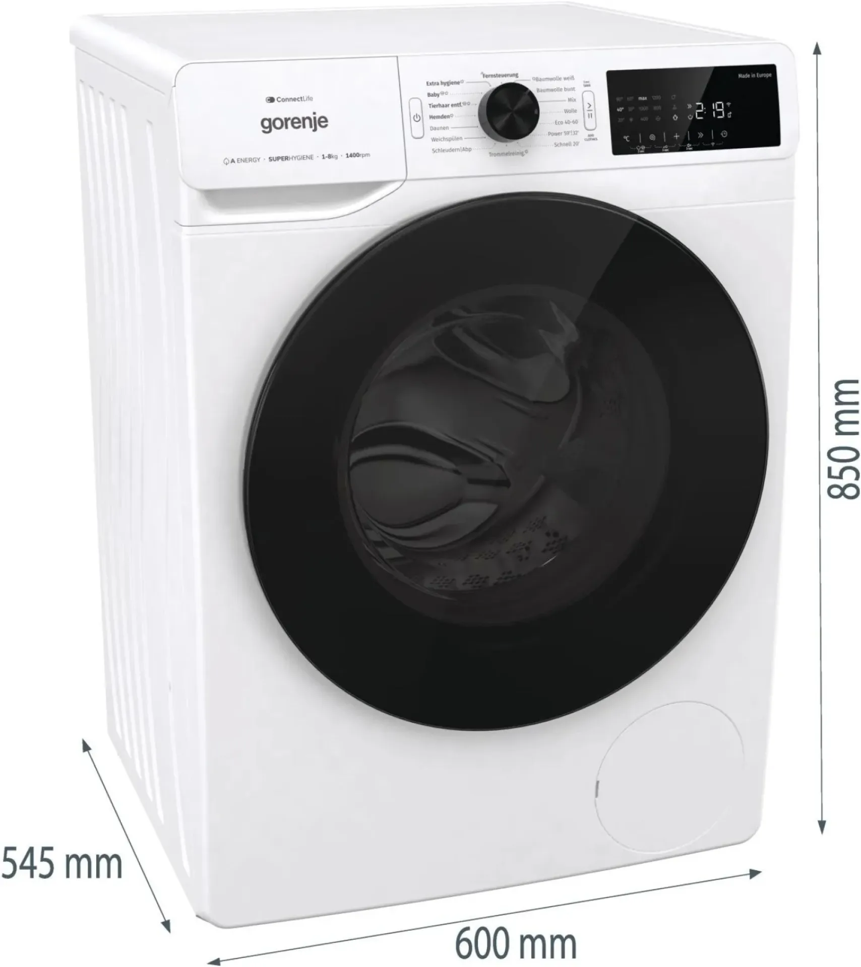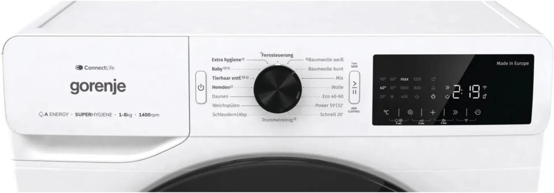 | Nennkapazität in Kilogramm für das Programm „eco 40-60“ | 8 kg |