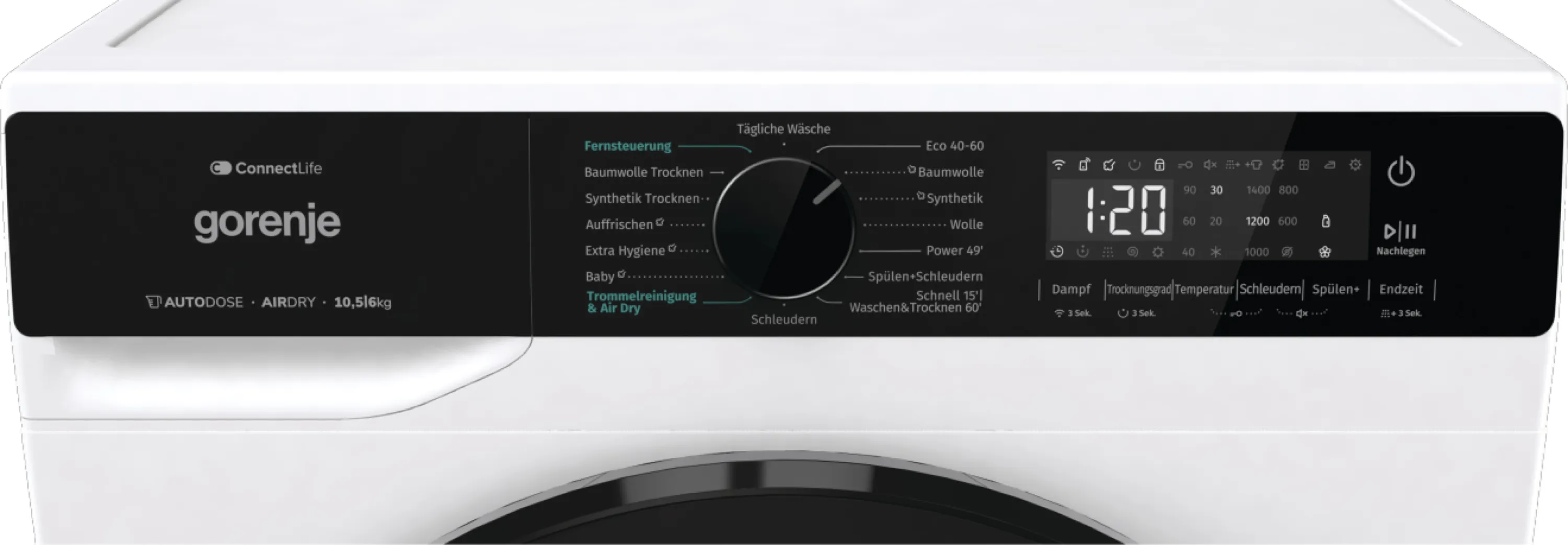 Der Gorenje WD2PA1X64ADAAW/DE Waschtrockner vereint leistungsstarkes Waschen mit schonendem Trocknen in nur einem Gerät. Mit einer großzügigen Kapazität von 10,5 kg beim Waschen und 6 kg beim Trocknen eignet sich dieses Kombigerät ideal für Familien und Haushalte mit hohem Wäscheaufkommen. Modernste Technik, wie das automatische Dosiersystem AutoDose und praktische Dampffunktionen, sorgt für perfekte Waschergebnisse bei maximaler Effizienz.