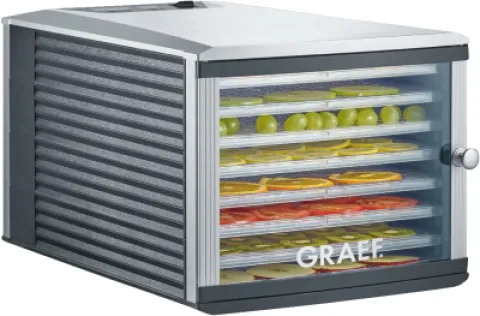 kseite, imer bis 40 Stunden, 8 Kunststofftabletts (295 x 365 mm, ), BPA frei und spülmaschinengeeignet, Dörrfläche 0,84 m², zur