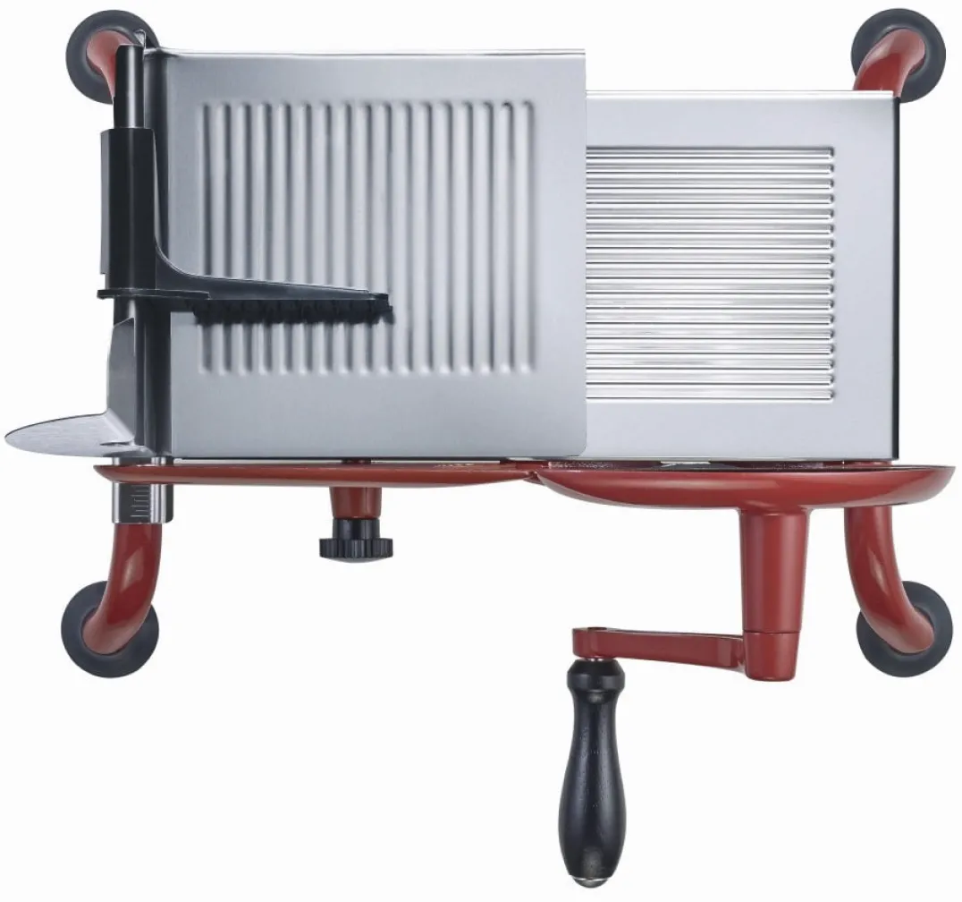Manuelle Bedienung treibt die Klinge per Kurbel an. Sie schneiden präzise, leise und ohne Strom. Ideal für bewussten Genuss mit klassischer Technik.