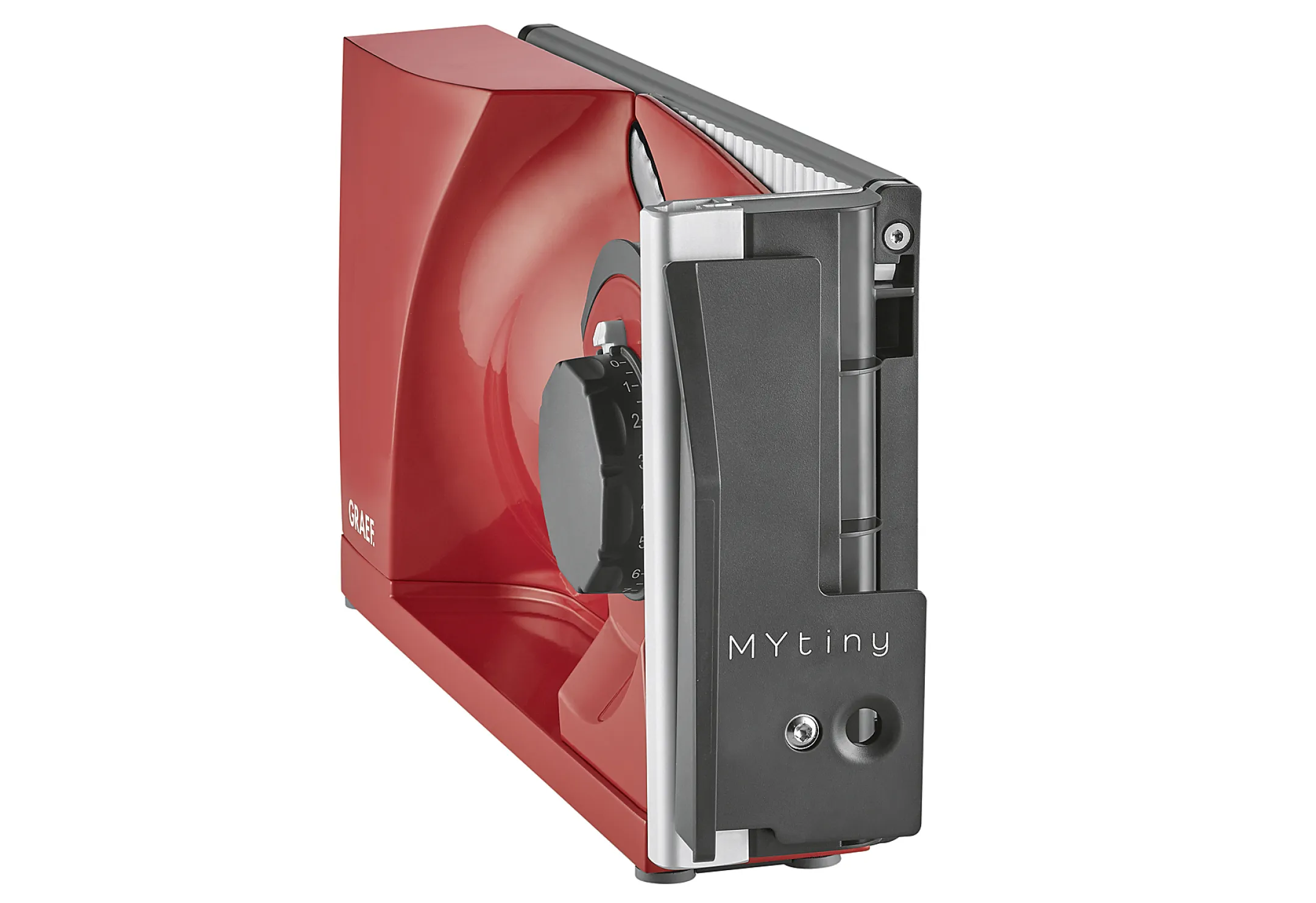 Erleben Sie neue Freiheit beim Schneiden – mit dem kompakten GRAEF MYtiny Allesschneider in Rot. Sichern Sie sich jetzt zuverlässige Präzision für Ihre Küche bei smartgoods.de!
