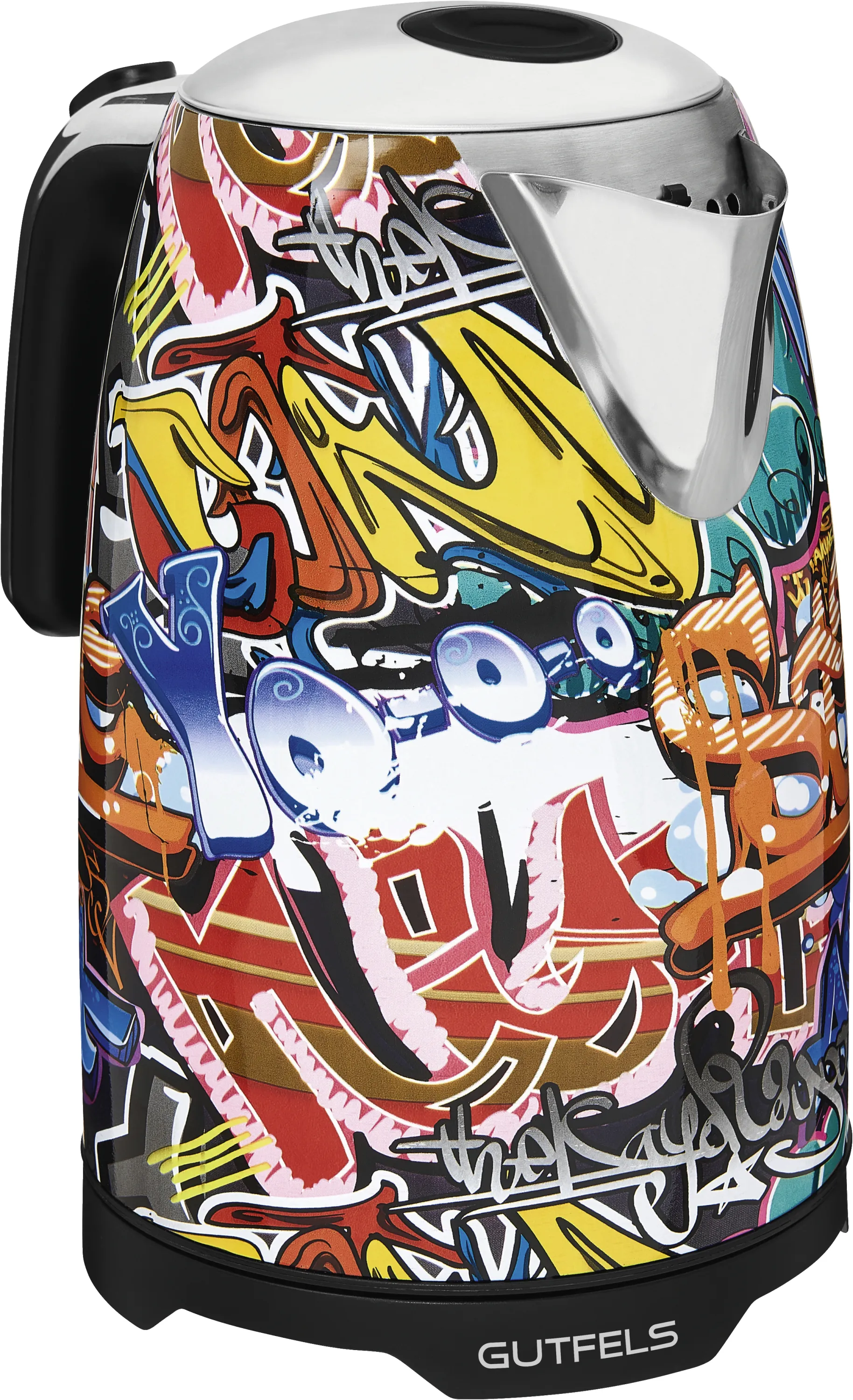 Der Gutfels WATER 3010G Wasserkocher richtet sich an stilbewusste Genießer, Familien, Singles und alle, die Wert auf originelles Design gepaart mit Alltagstauglichkeit legen. Ob Morgentee, schnelle Suppe zwischendurch oder Gäste auf einen Kaffee – mit diesem Wasserkocher bringen Sie Komfort und Kreativität in Ihren Alltag. Das peppige Graffiti-Design setzt Trends und verleiht Ihrer Küche eine individuelle Note, der man einfach nicht widerstehen kann.