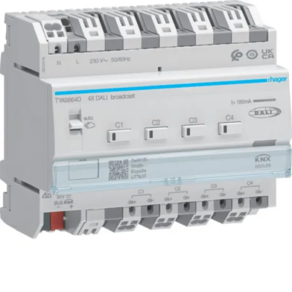 Steigern Sie den Wert und Komfort Ihrer Immobilie mit intelligenter Lichtsteuerung. Erleben Sie die Vorteile des HAGER TYAS664D DALI Aktors 4-fach KNX Secure – für moderne, effiziente und sichere Beleuchtung.