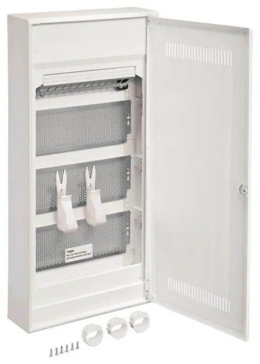 Der HAGER VA48WWH Multimediaverteiler ist die ideale Lösung für moderne Hausinstallationen und zukunftssichere Netzwerktechnik. Mit seinem 4-reihigen Aufbau und 48 Teilungseinheiten (4x12 TE) bietet er ausreichend Platz für Strom- und Kommunikationsmodule wie Router, Switches oder Patch Panels. Die geschlitzte Kunststofftür sorgt nicht nur für eine elegante Optik, sondern ermöglicht auch eine optimale WLAN- und Signalqualität – perfekt für alle, die Wert auf eine leistungsfähige und ordentliche Verkabelung legen.