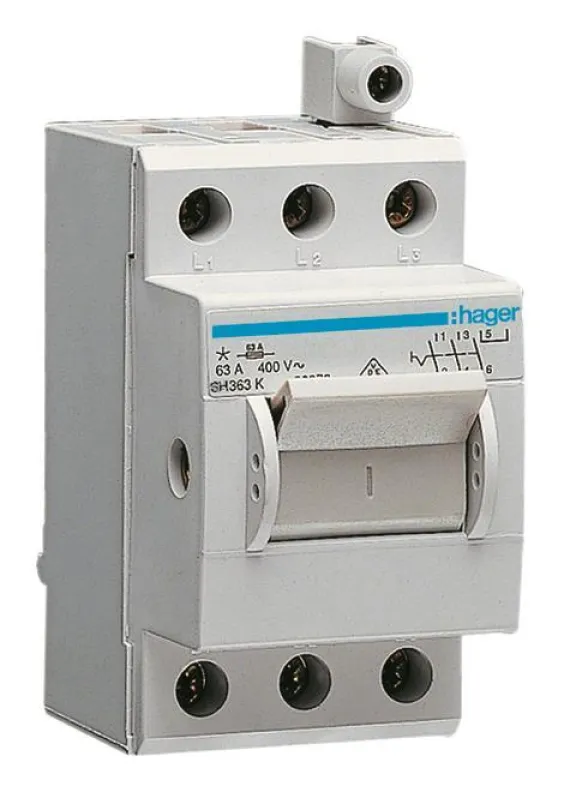 Mit dem HAGER Ausschalter SH363K sorgen Sie für maximale Anlagenverfügbarkeit und erfüllen moderne Sicherheitsstandards bei der Schaltung von Maschinen, Anlagen oder Verteilungen. Die klare Bauform und intuitive Handhabung erleichtern die tägliche Nutzung – ideal zum sicheren Trennen, Freischalten oder zur Wartung Ihrer elektrischen Anlagen.