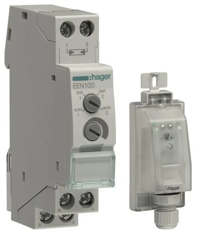 Der Hager Dämmerungsschalter EEN100 mit Aufbaufühler EEN003 bietet eine zuverlässige und energieeffiziente Lösung für die automatische Lichtsteuerung im Innen- und Außenbereich. Dank moderner Sensortechnik schaltet der Dämmerungsschalter Ihre Beleuchtung abhängig von den aktuellen Lichtverhältnissen ein oder aus – ganz ohne manuelles Eingreifen. So sparen Sie Energie, erhöhen die Sicherheit und sorgen jederzeit für optimale Lichtverhältnisse rund um Ihr Gebäude.