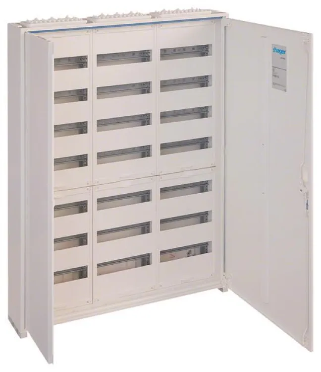 Mit seinen großzügigen Maßen (1100 x 800 x 161 mm) ermöglicht der Hager FWB73S eine übersichtliche und strukturierte Installation – auch bei komplexen Anlagen. Die hochwertige Verarbeitung und der pflegeleichte, reinweiße Stahl sorgen für ein zeitloses, professionelles Erscheinungsbild.